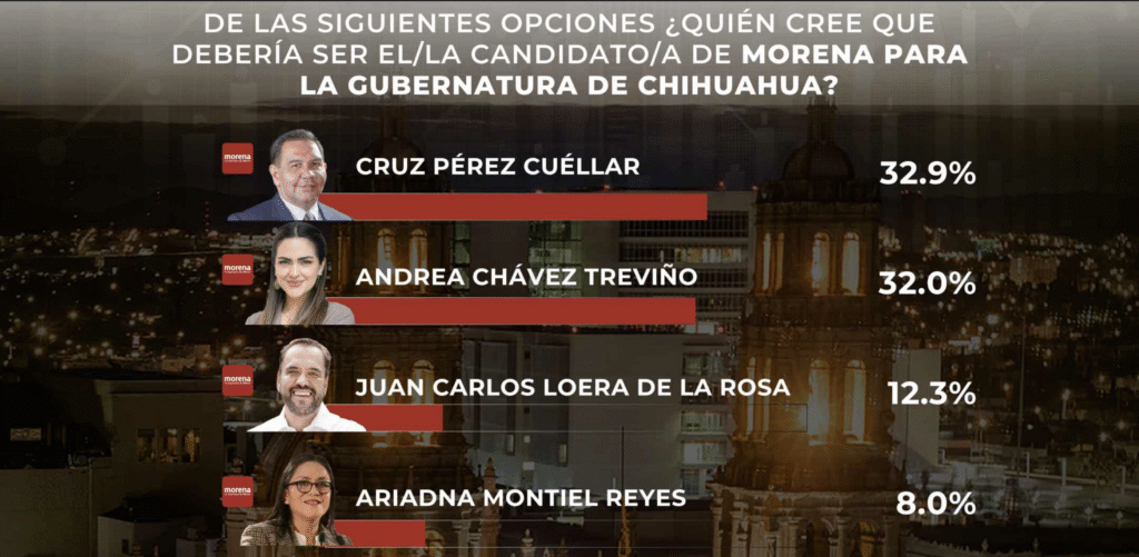 La casa encuestadora GobernArte, en su más reciente estudio sobre preferencias ciudadanas para la elección de gobernador en Chihuahua en 2027, la cual se realizó del 25 al 29 de septiembre de 2025, con una muestra de 500 entrevistas a ciudadanos mayores de edad con credencial de elector vigente.