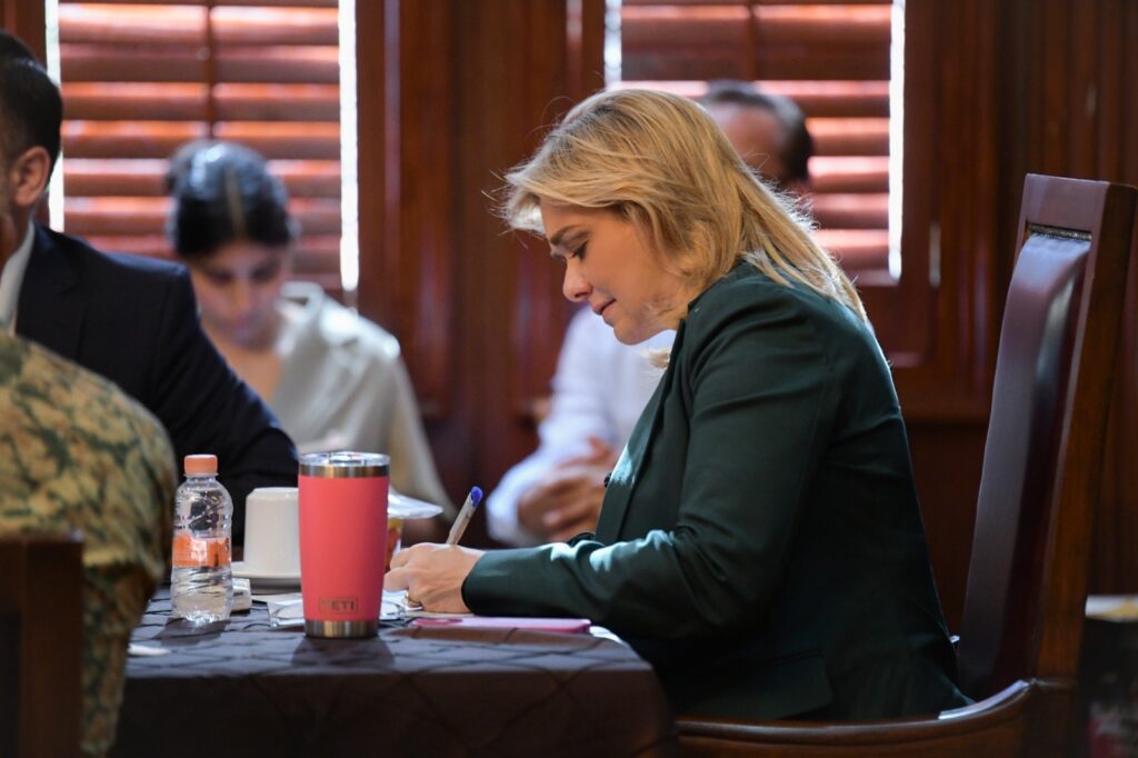Chihuahua, Chih.- La gobernadora Maru Campos encabezó la sesión de este lunes de la Mesa Estatal de Construcción de Paz, en la que autoridades de los tres niveles de Gobierno analizaron los avances alcanzados en materia de combate a la criminalidad en la entidad.
