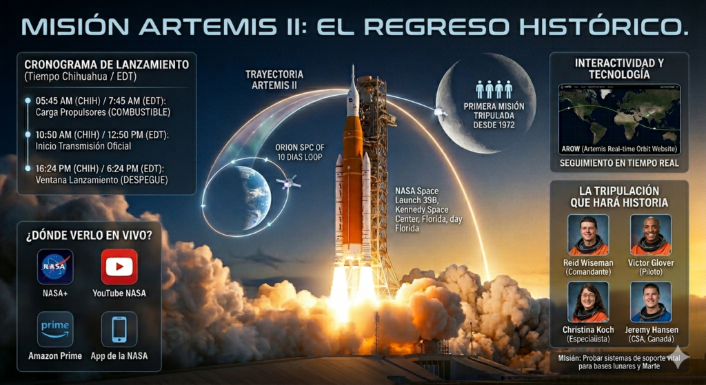 CABO CAÑAVERAL, FL. — El momento que la humanidad ha esperado por más de medio siglo ha llegado. La NASA confirmó que todo está listo para el lanzamiento de Artemis II, la primera misión tripulada que orbitará la Luna desde 1972. El despegue está programado para este miércoles 1 de abril de 2026, marcando el inicio de una nueva era en la exploración del espacio profundo.