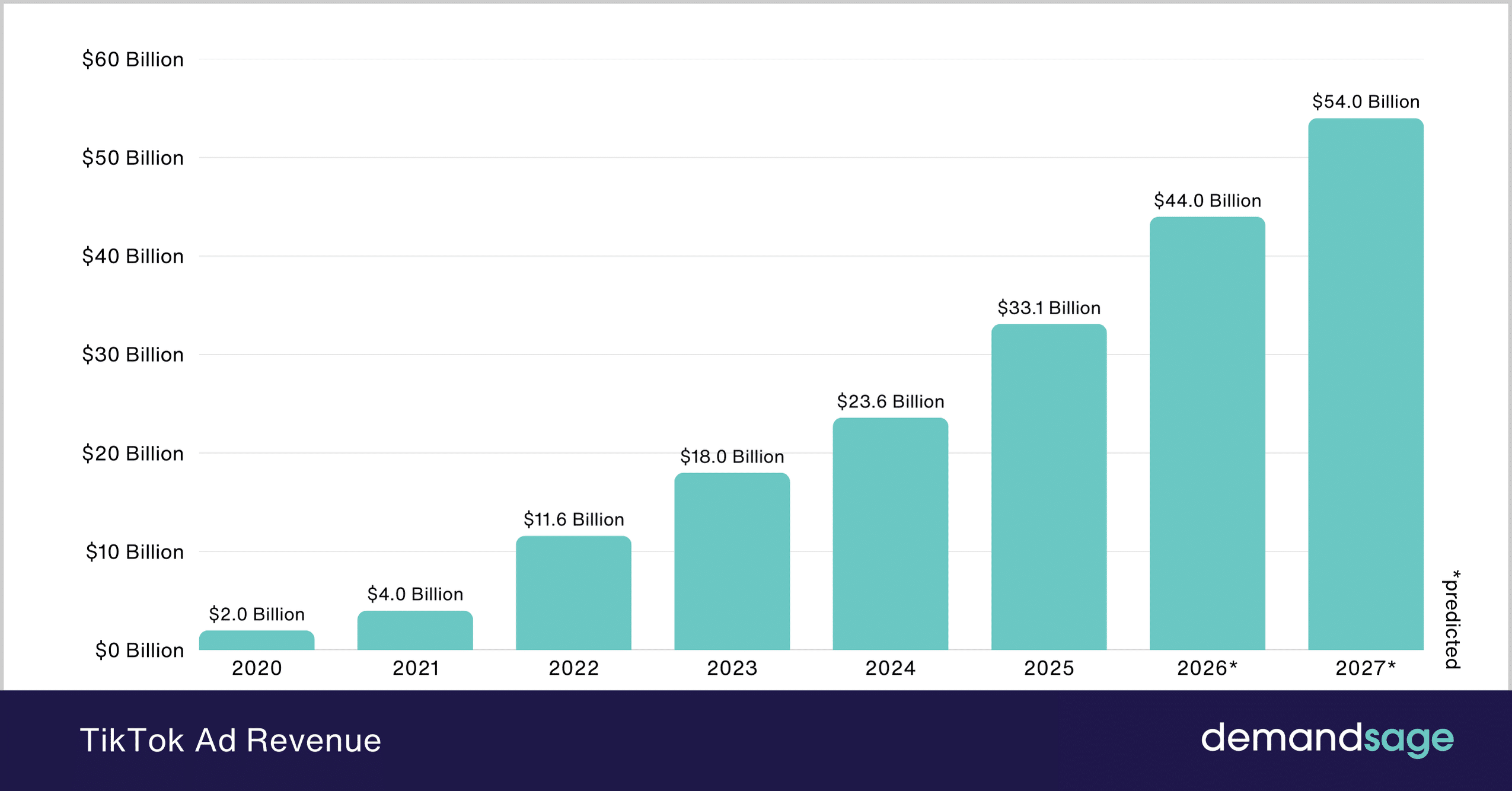 A nivel mundial, las estimaciones sitúan los ingresos publicitarios de TikTok en más de 32 000 millones de dólares en 2025, con crecimiento año sobre año del entorno del 25 % y expectativas de ampliación en 2026 y 2027.