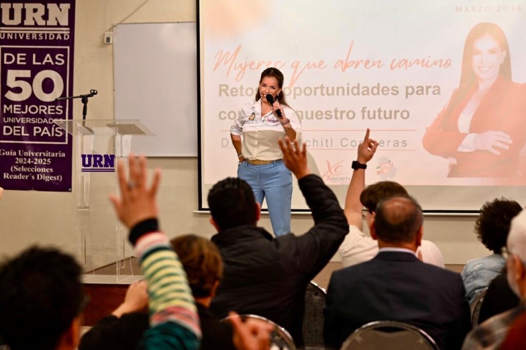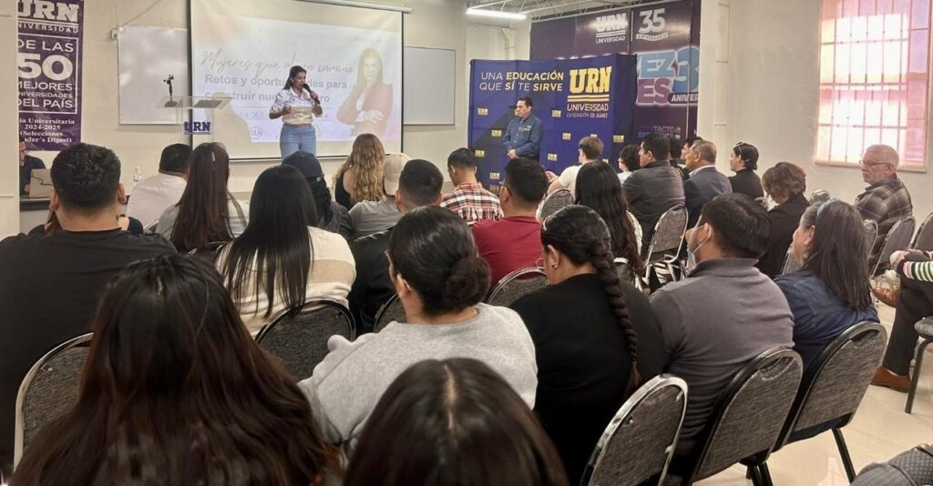 CIUDAD JUÁREZ, CHIH. — ¡Se armó la grande en la Universidad Regional del Norte! En pleno Mes de la Mujer, la diputada Xóchitl Contreras no se anduvo con rodeos y se metió hasta la cocina de la URN para sacudir las conciencias de la «chaviza». Con un mensaje que retumbó en las paredes de la prepa y la facultad, la legisladora albiazul soltó verdades como puños: “¡Juárez no necesita flojos, necesita guerreros preparados!”.